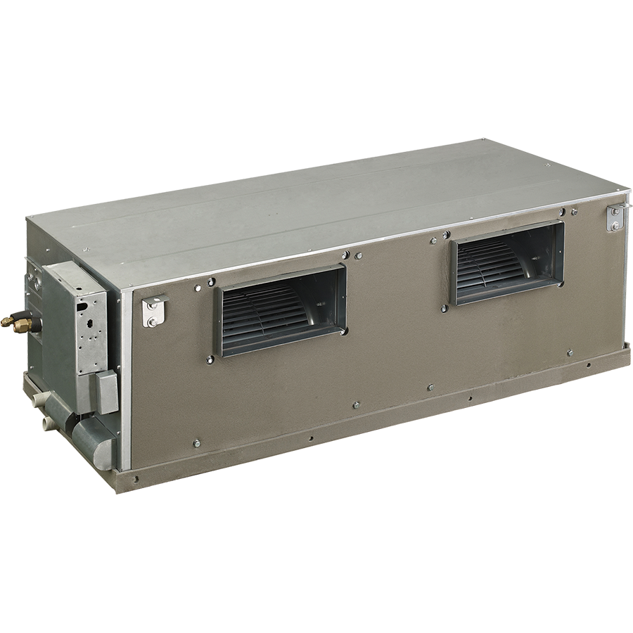 Канальные кондиционеры высокой мощности с высоким статическим давлением позволяют создавать разветвленные системы воздуховодов. Это обеспечивает охлаждение множества небольших помещений или создает комфортные условия в больших пространствах: цехах, ангарах, холлах отелей, бизнес-центрах и других.