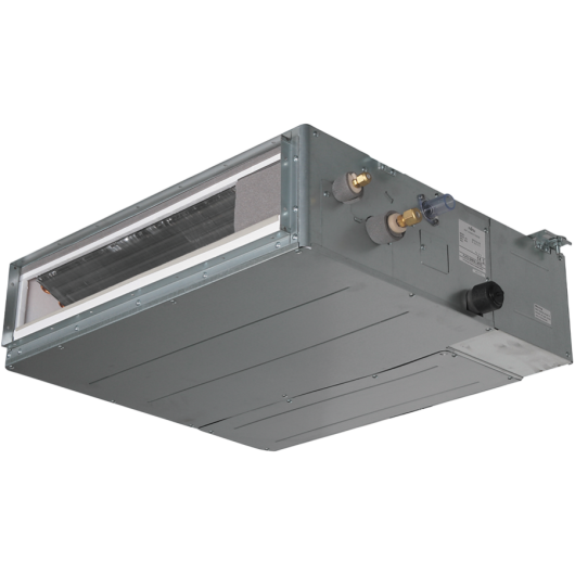 Узкопрофильные канальные внутренние блоки Fujitsu — уникальное предложение на рынке систем кондиционирования. Они отличаются наибольшей гибкостью размещения: их можно установить как за подвесным потолком при горизонтальной установке, так и в пространстве между стен при вертикальной установке. И в том, и в другом случае внутренний блок сплит-системы полностью незаметен. Внутренний блок обладает рекордно малой высотой (всего 198 мм), что позволяет устанавливать данную модель в ограниченном пространстве. При запотолочной установке можно осуществлять забор воздуха как с нижней, так и с тыльной стороны внутреннего блока. Непревзойденный уровень статического давления вентилятора 90 Па гарантирует подачу теплого воздуха на уровне пола при работе на обогрев помещения. Отдельно следует отметить низкий уровень шума при работе этой модели внутреннего блока.