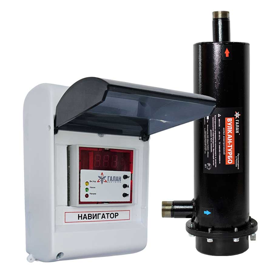 В данных комплектах электрический котёл ТЭНового типа оснащён электронным регулятором температуры Навигатор Базовый.